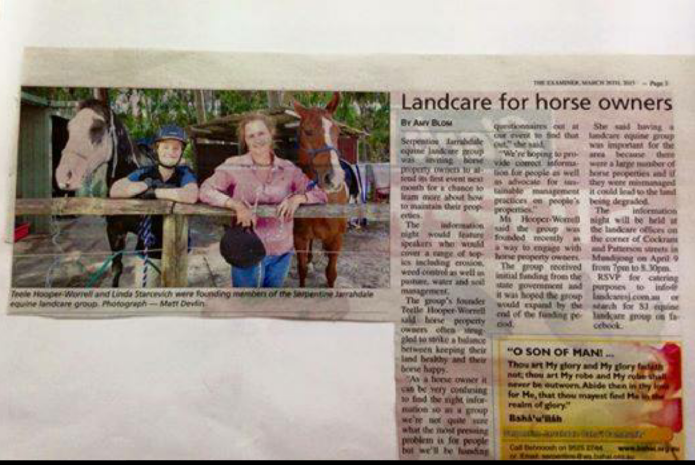 I am excited to be presenting at a new Equine landcare group that has been implemented within the Serpentine Jarrahadale shire